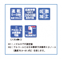 ※乾燥時間は当社測定値による ※風速はノズル口での測定値